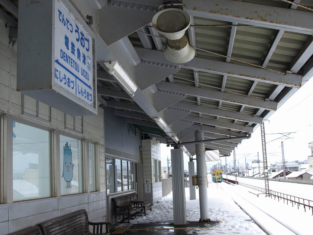 ホームは1本で、並行して走るあいの風とやま鉄道の線路が見えます。