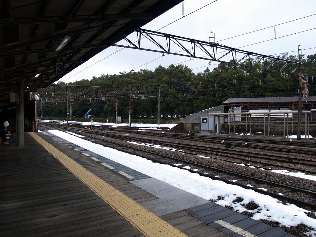 本線(写真奥)のホームはカーブしていて、乗り降りの際に車両との間に隙間ができます。