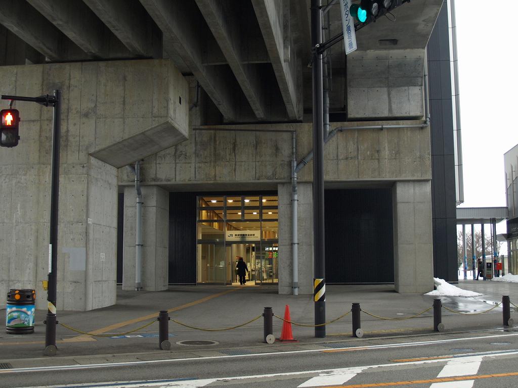 富山地方鉄道の新黒部駅側から見た駅舎入り口。