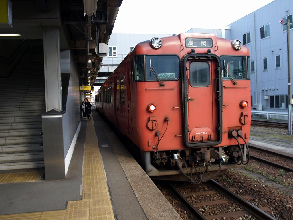 城端線ホームに停車中のキハ47。