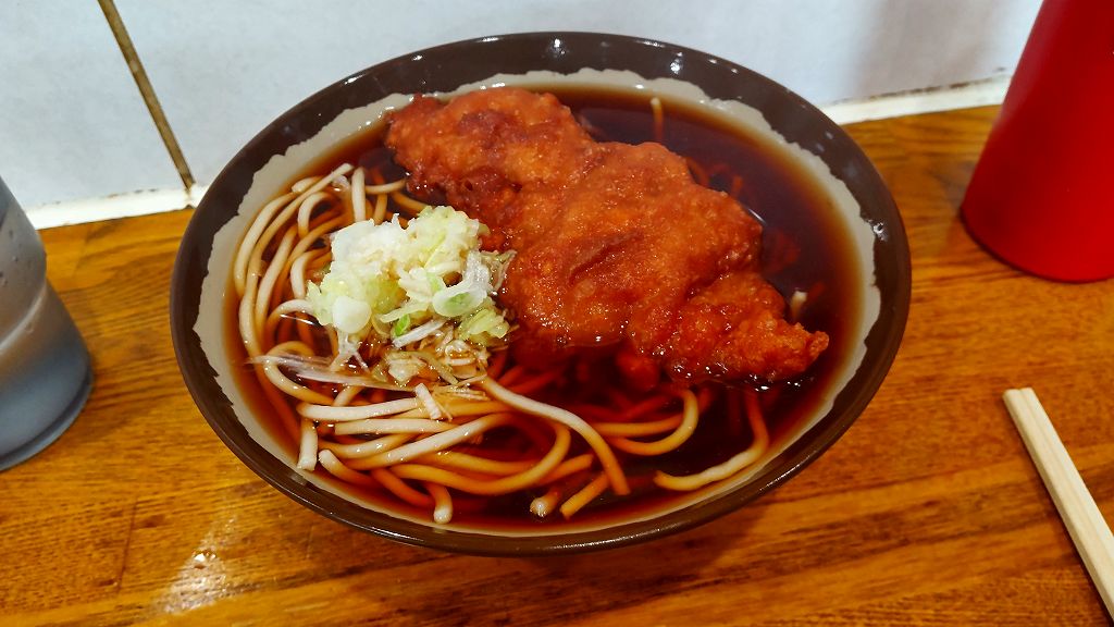 ただ、食べ進むうちにから揚げにつゆが染みてそばと合うような気がしてきました。