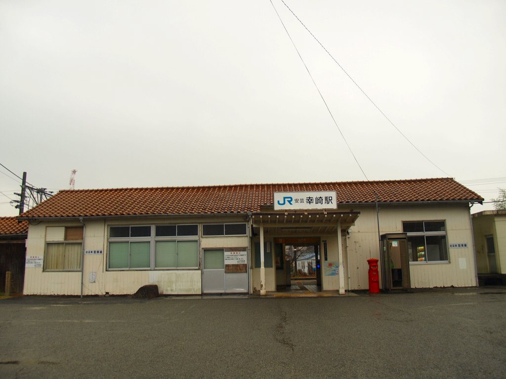 駅舎は内陸側に建っています。駅前はタクシーの営業所と民家がすこしあるくらいです。