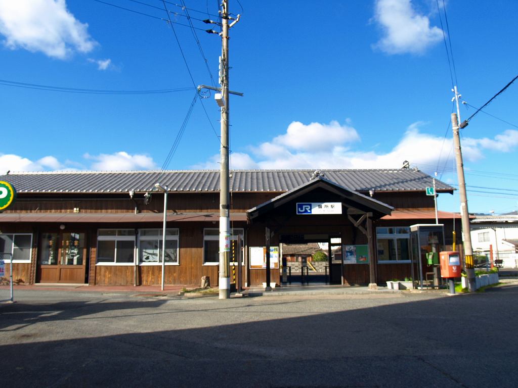 「ごせ」駅です。明治時代に建築された木造駅舎が健在です。