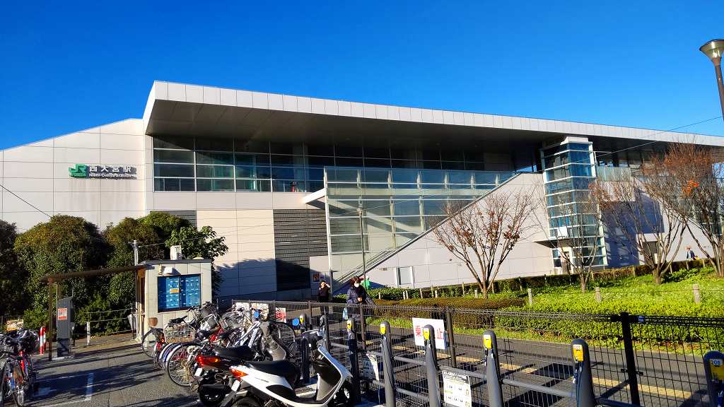 写真は南口で、駅の目の前に不自然な空き地がありました。