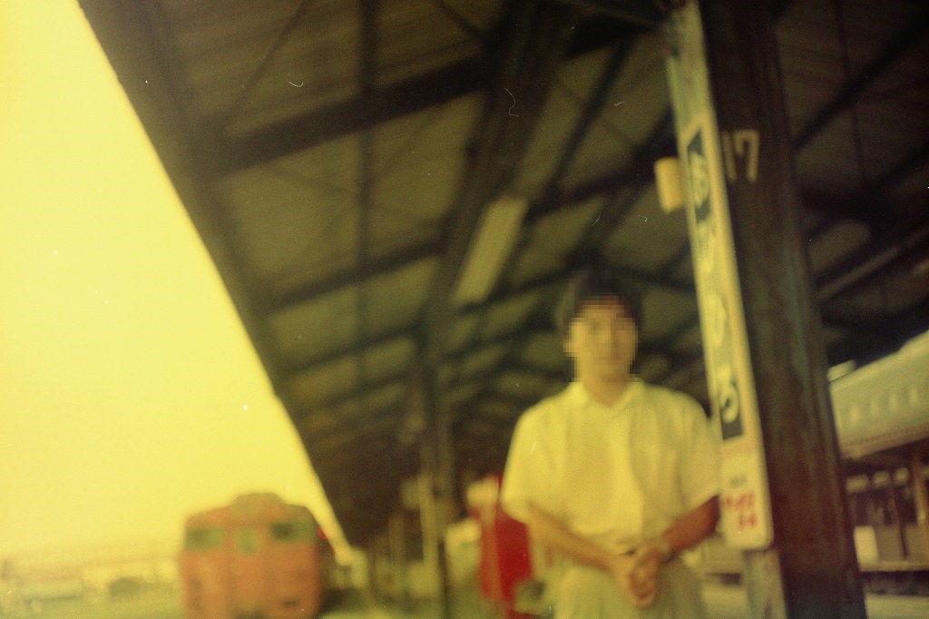 広尾線のホームと青年(ピンボケ)