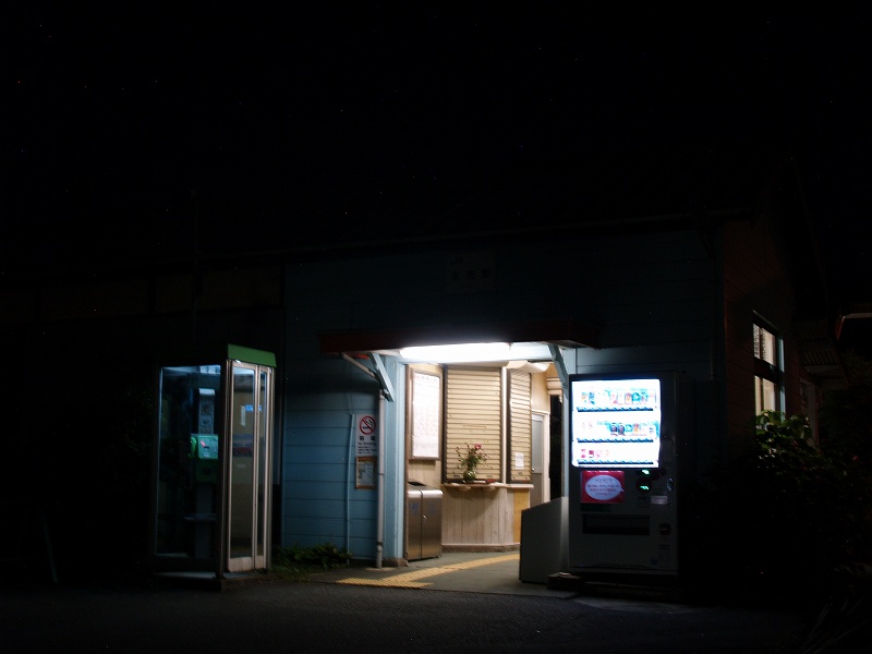 だいぶ暗くて写すのに一苦労(三脚持っていない)。無人駅です