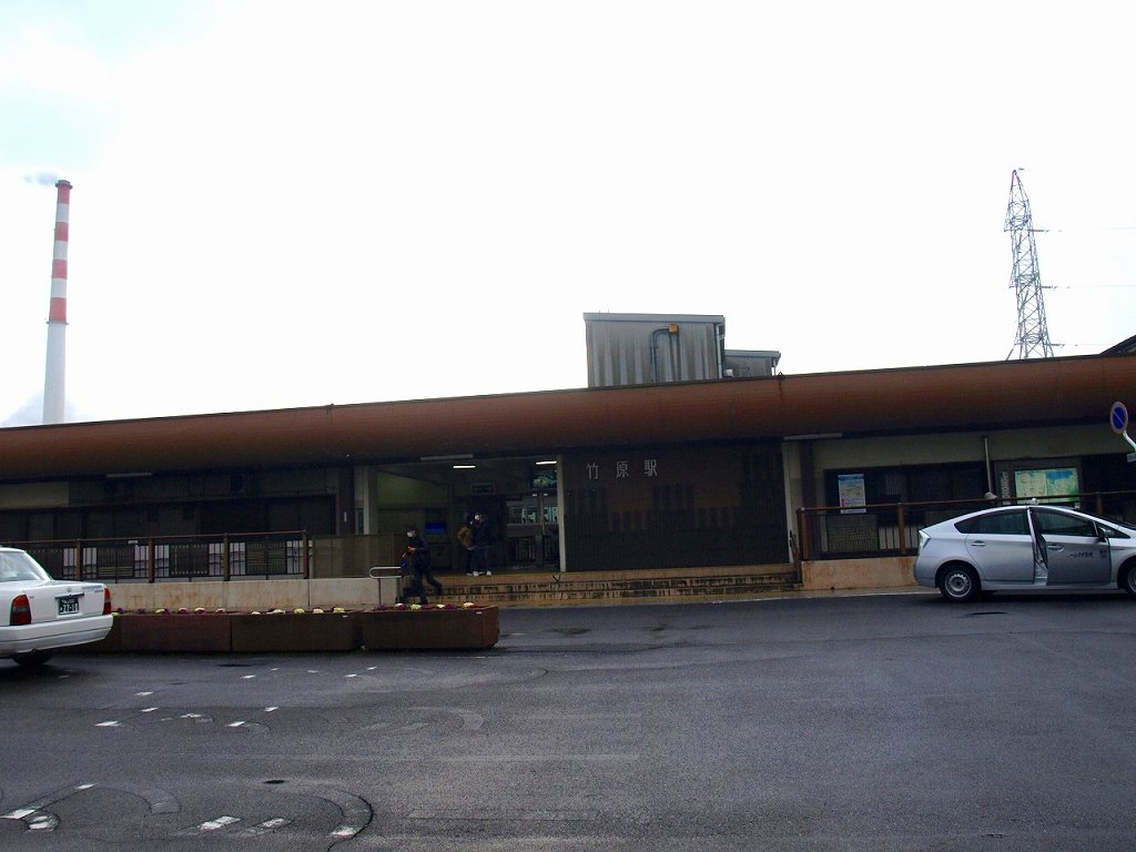 昭和によくある鉄筋平屋建ての駅舎。竹原市の玄関駅。